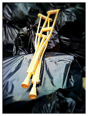 Don't just throw those old crutches away. There are some ways to make use of those old crutches, it's either donate it on the NGOs near your community (non-governmental organization) or you can recycle like the one you see below. You can create furniture, shelf or even decoration on your living room. So you better walk and try !!