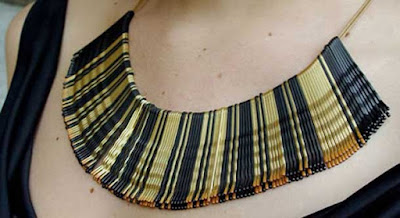This recycled necklaces are made from almost 100% recycled materials, inspired by nature and its conservation, each neckpiece is one of a kind. In a glance, we can’t really notice it’s made out of recycled materials. It may look funny to wear, but the idea to create such a beautiful piece is an art. So people out there, do you find any creative ideas in recycling your necklaces? This is what I called creative arts.