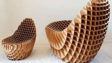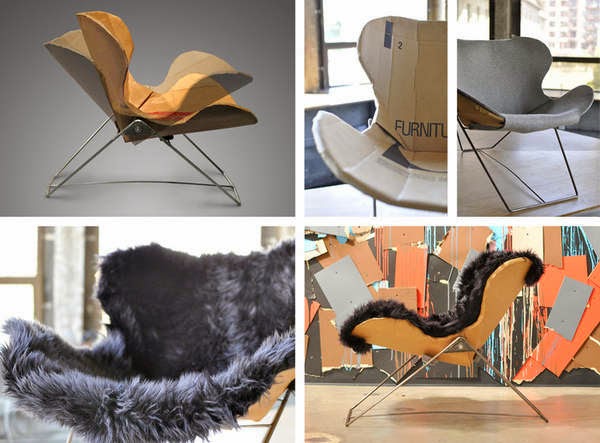 The argentinean architect Ana Mitrano recently builds these organic chairs and furniture complete with uniquely shaped pieces from recovered cardboard. The designer created a variety of pieces to furnish an entire space including a rocking chair, a series of low-rise seats, coffee tables and footrests. The furniture is made with special cardboard plates assembled and pressed. The strength allowed over a hundred kilos. They are ergonomic, lightweight and can be natural or painted according to the environment that will integrate color. DIY a curvy cardboard furnitures. the LINK