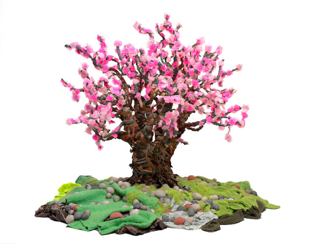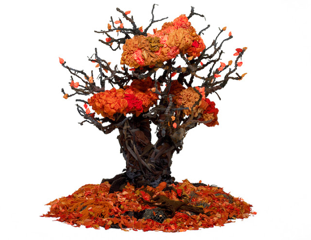 Guerra de la Paz is the composite name that represents the creative team efforts of Cuban artists, Alain Guerra and Neraldo de la Paz who live and work in Miami, Florida. Gaining access to an overabundance of discarded clothing, they used clothes as their main unconventional materials to produce a series of beautiful and inspiring recycled art which are shown below. They create work with a universal message. Using recycled clothes as their medium and the guidance of the unrelenting amounts of information that fuels today's mass conciousness and it's subversive parallels.